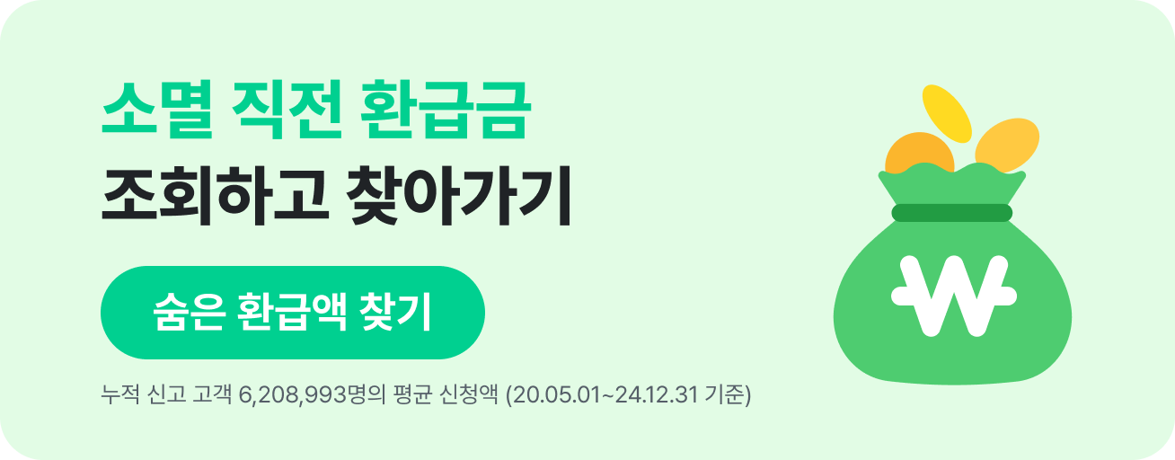 - 현금 결제나 다른 일반 카드 결제분은 소급 환급 불가