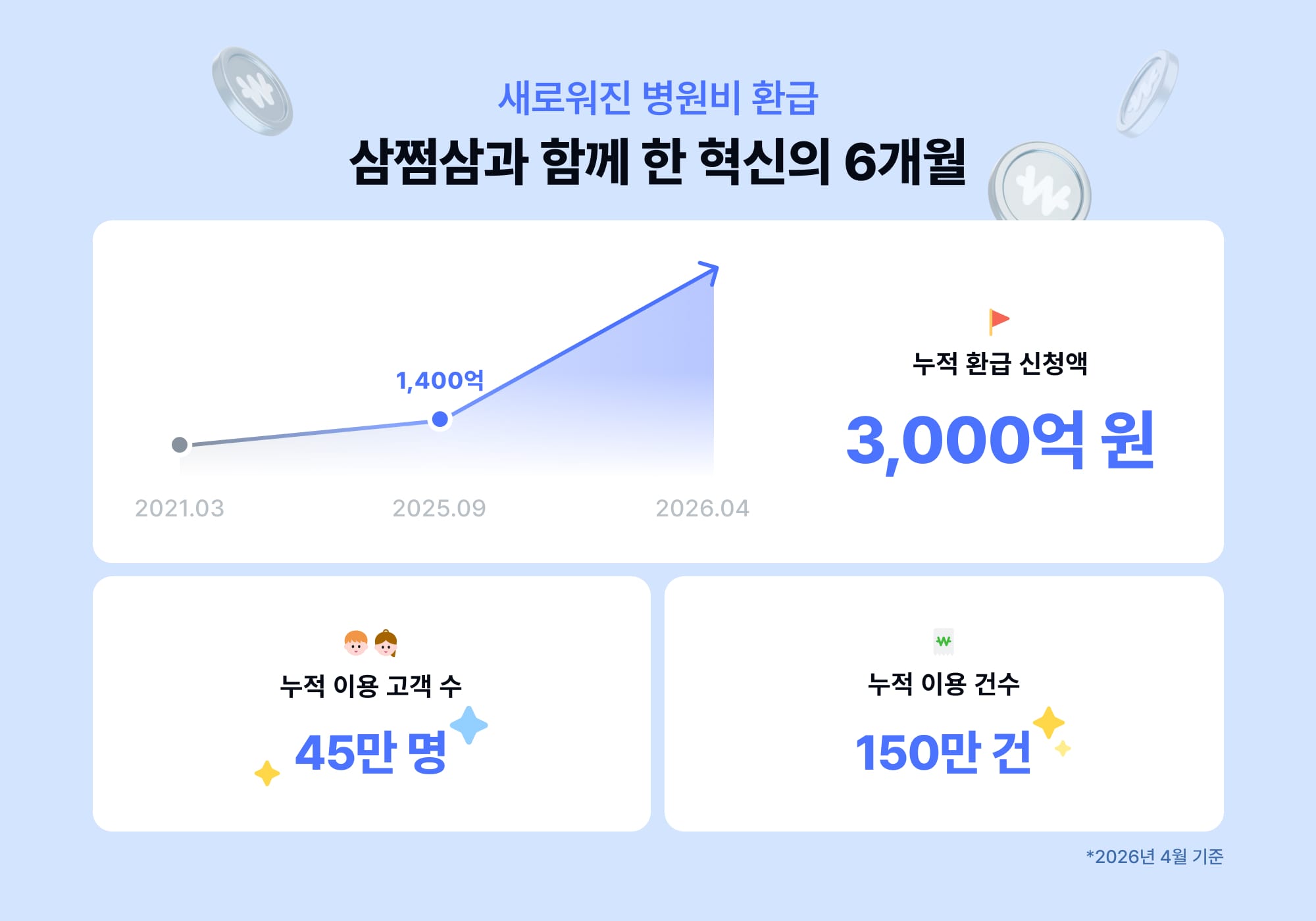 ‘2400만이 찾은 대표 환급 플랫폼’ 삼쩜삼을 운영하는 자비스앤빌런즈(Jobis&Villains, 대표이사 김범섭)가 ‘병원비 환급 서비스’의 누적 이용 고객수가 45만명을 넘어서고, 누적 환급신청액이 3000억원을 돌파했다고 27일 밝혔다.