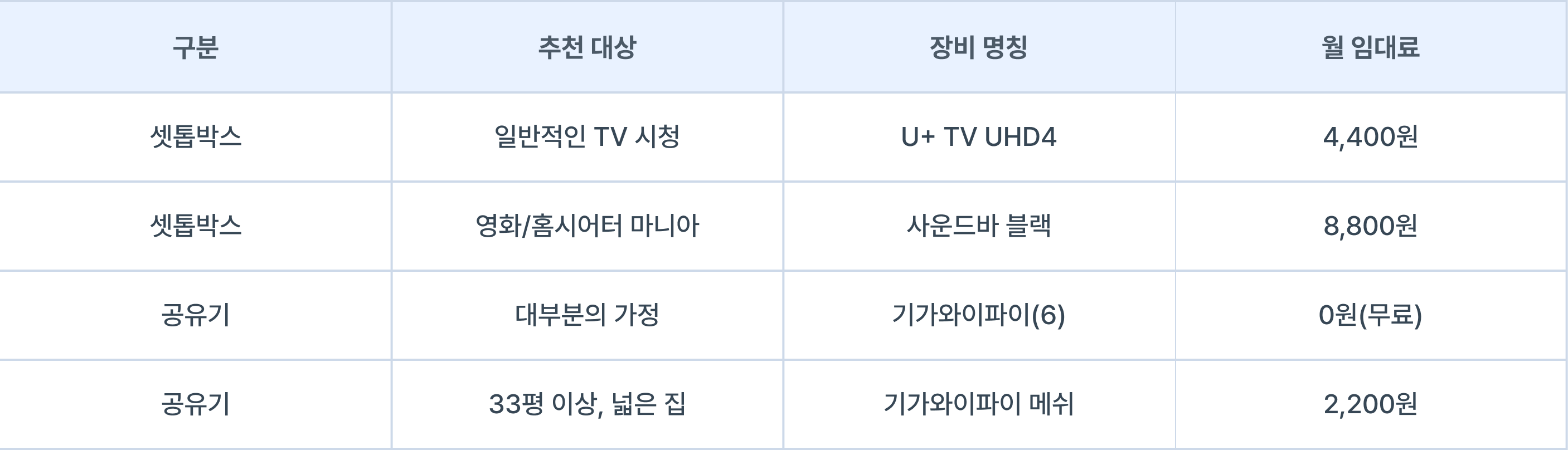 KT,SK는 공유기 임대료로 매달 1,100~2,200원을 따로 청구해요. 반면, LG는 무료예요. 3년이면 최대 79,200원 차이가 납니다. -