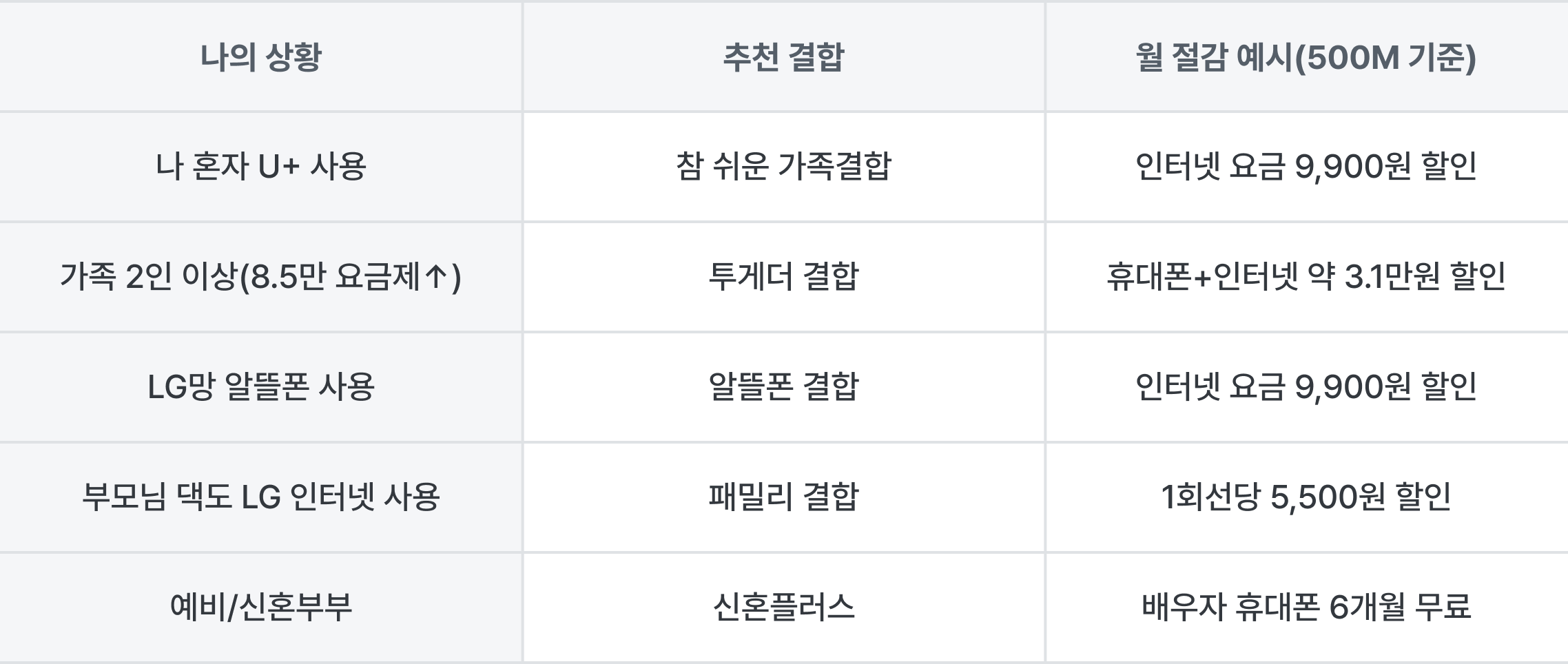 결합은 인터넷 요금을 결정하는 가장 큰 변수입니다. 내 통신사 상황에 맞춰 고르세요.