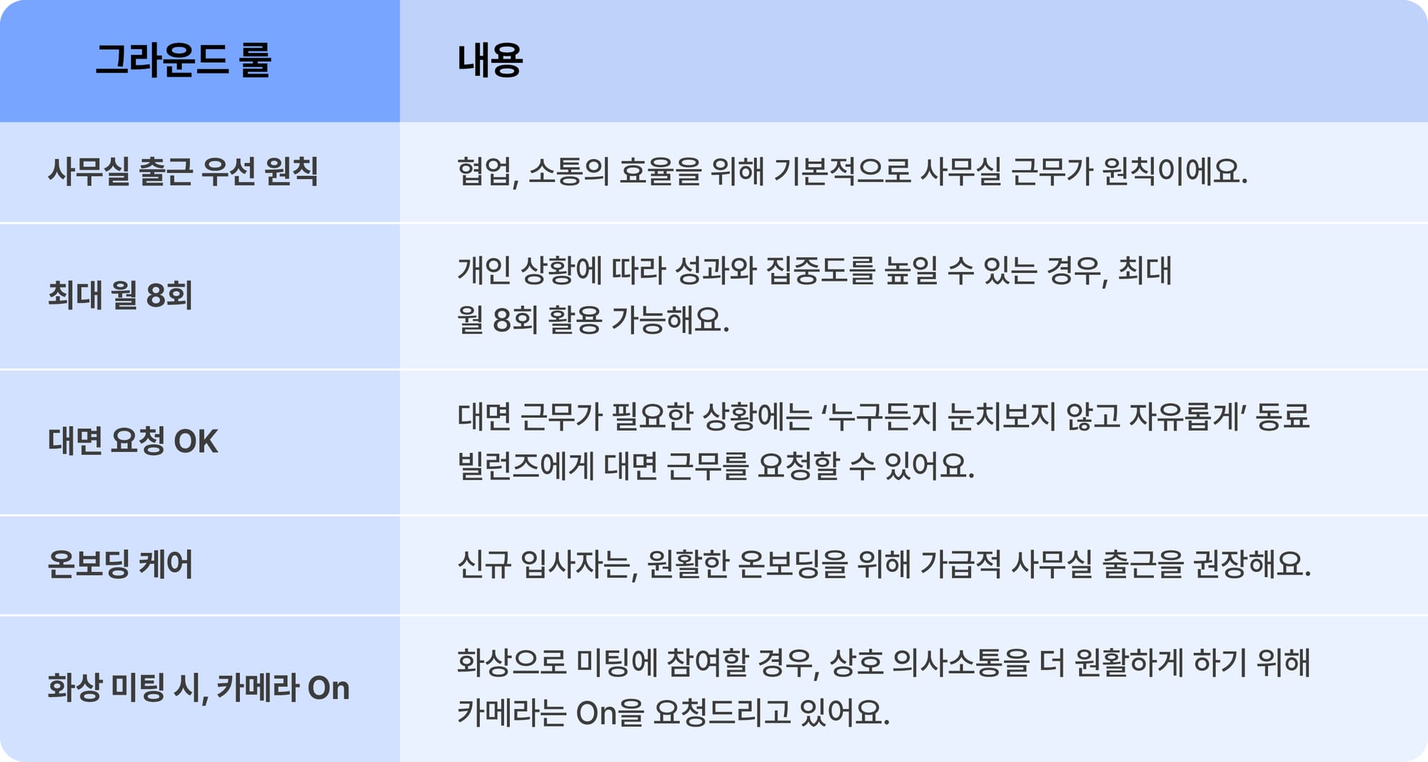 지금의 재택근무 문화가 자연스럽고 건강하게 자리잡을 수 있었던 것 같아요.